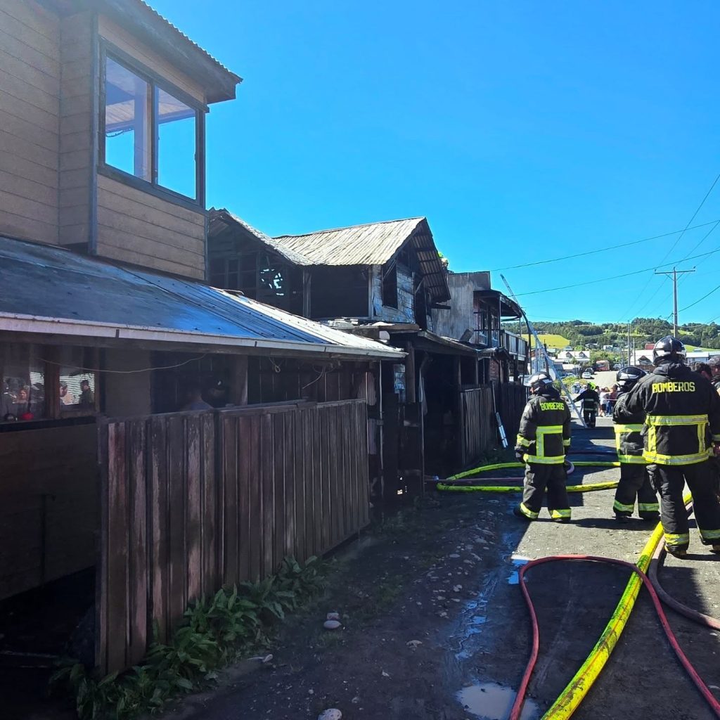Un incendio de gran magnitud provocó importantes pérdidas materiales tras afectar a dos viviendas en la población 12 de Octubre, en la comuna de Quellón.