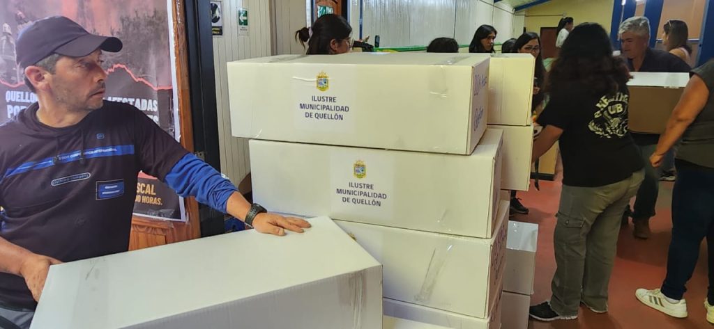 Tras una semana de campaña solidaria para ir en ayuda de las víctimas y damnificados por los incendios en la Quinta Región, la comuna de Quellón cerró ayer el proceso de recolección realizado en el Gimnasio Fiscal. Desde tempranas horas del sábado personal municipal de diferentes oficinas y programas, junto al Grupo Scout Paicaví, integrantes de la Fundación Garritas Chilotas, voluntarias y voluntarios, estuvieron clasificando la ayuda recibida para posteriormente cargar un camión con más de tres toneladas con productos de primera necesidad que partió rumbo a la zona afectada. El vehículo de carga hizo una parada en Dalcahue para sumar la ayuda de esa comuna y llevó también el aporte que envió la comuna de Guaitecas. Lo recolectado en la campaña solidaria será entregado por el alcalde de Quellón, Cristian Ojeda Chiguay, en la ciudad de Viña del Mar a las autoridades de la zona.